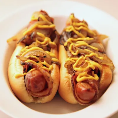 Vienna Sausage with Bacon, Cheese, Onion and Sauce